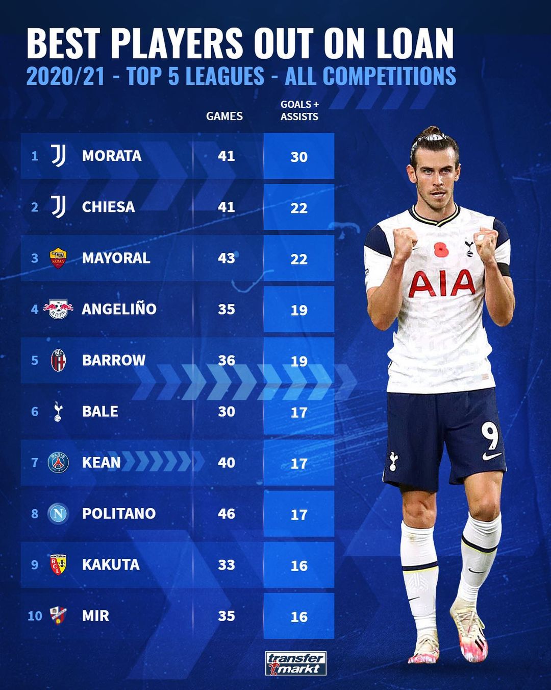 Wypożyczeni piłkarze w klubach top 5 lig z największą liczbą bramek i asyst