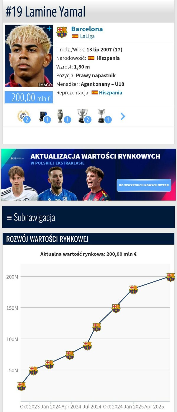 Wzrost wartości Lamine'a Yamala na portalu Transfermarkt