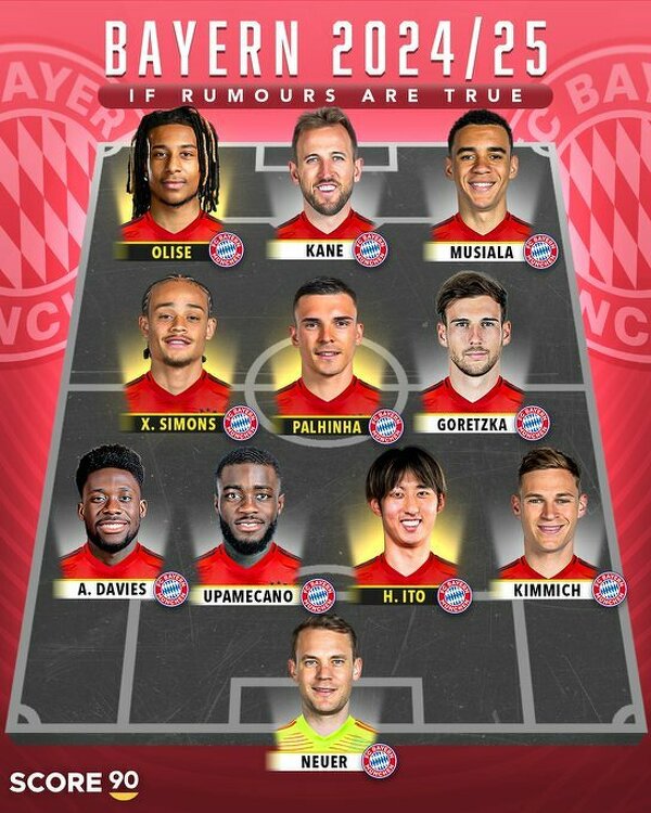 XI Bayernu według Score 90 jeśli potwierdzą się pogłoski transferowe