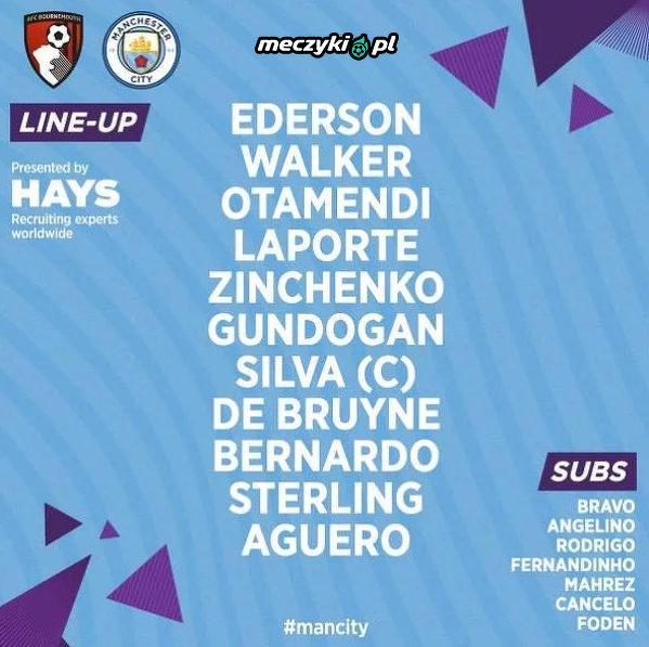 XI Man City na mecz z Bournemouth
