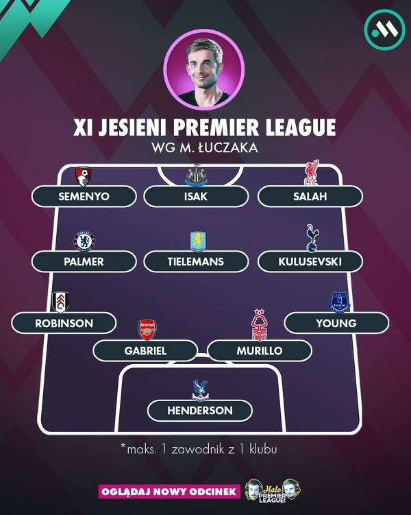 XI pierwszej części sezonu Premier League wg Macieja Łuczaka
