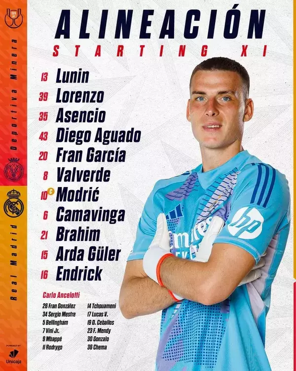 XI Realu Madryt na mecz Pucharu Króla przeciwko Deportiva Minera