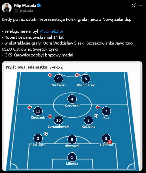 XI reprezentacji Polski w poprzednim meczu z Nową Zelandią