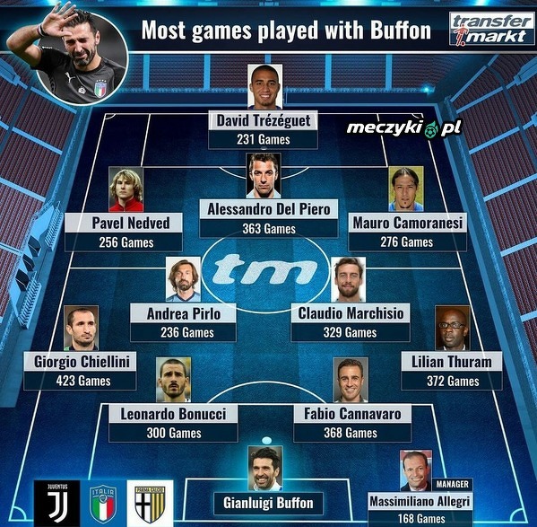 XI zawodników, z którymi Buffon zaliczył najwięcej wspólnych występów w karierze