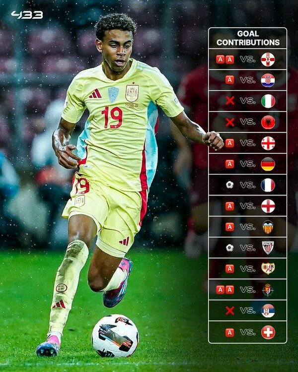 Yamal miał udział w 13 bramkach w ostatnich 14 meczach, w których zagrał