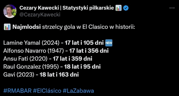Yamal najmłodszym strzelcem bramki w El Clasico