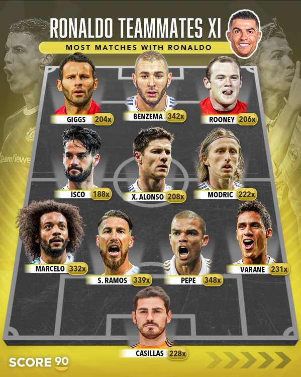 Z nimi CR7 grał najwięcej