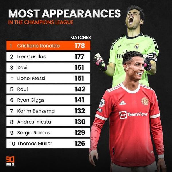 Zawodnicy z największą liczbą występów w Lidze Mistrzów